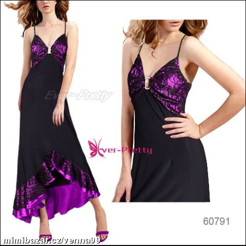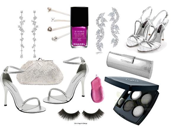 Taky bych volila černé sandálky i psaníčko, výrazné štrasové náušnice, náramek,prsten. Lak na nehty by se mi líbil v odstínu té fialové, nějaký luxusní i výrazně tmavší nebo francii. Líčení čisté, jen lesk na rty a výrazné oči, ale tam bych už nic ani stíny ani lesk do fialova nedávala.
