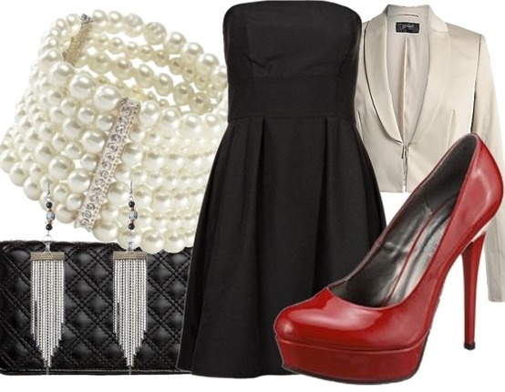 ! Já bych si asi vzala černé společenské boty, jednoduché perličkové náušnice a náramek a třeba zajímavé psaníčko, nevím, jaké máš vlasy, ale třeba hladký vyčesaný účes?