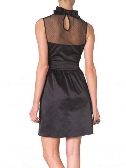Chtěla bych poprosit o radu, jaké doplňky mám zvolit k černým šatům. Mají jednoduchou krajku až ke krku, volná ramena a za krkem výraznou mašli. Viz. foto.