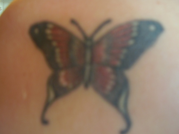 Já mám motylka na levem rameni vzadu Byl cely černy pak jsem si ho nechala na barvit Akorád mě děla starost Jak to bude až budu stará babka Jak ta kuže se scvrkne atd...Tak to bube ošklyví Už ho mám pěkně dlouho asi 6.let ale neomrzel mě Mě se líbí.