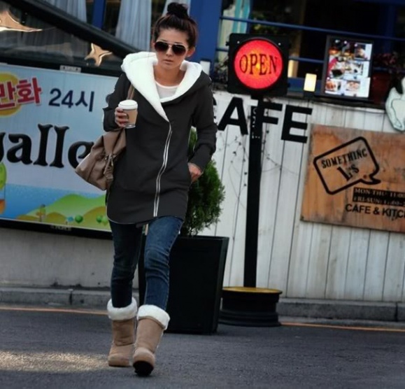 Kožíšek vypada že je huňatý ale to teda opravdu není, a není ani po celé mikině ale jen v kapuci a na boku. Střihově je dobrá a dlouhá ale jednou vypraná a už docela žmolkuje