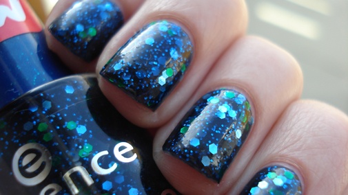 A taky jsem se zamilovala do tamavě modrého laku se třpytkami od Essence.