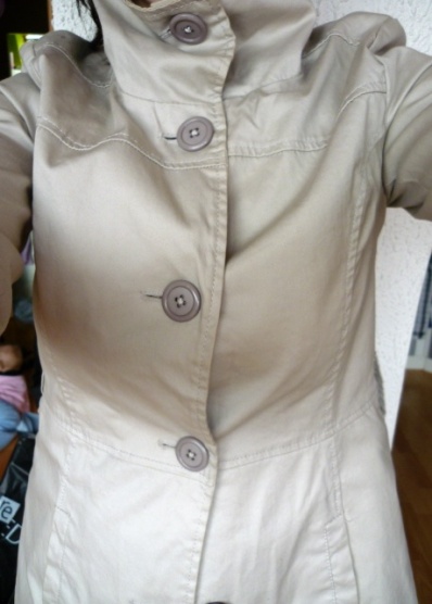 Nabízím moc pěkný kabátek s podšívkou, vel. S, měla jsem ho pouze 3krát na sobě, je mi už malý. Délka 68,5cm(bez límce), šířka 89cm, délka rukávu je 64cm. Dá se nosit s páskem, vzadu jsou poutka. Pěkně řešený límec. Cena 260 Kč včetně poštovného