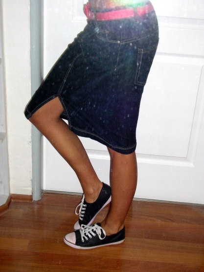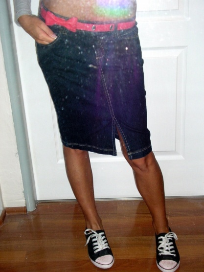 Prodám džínovou sukni zn. Camaieu. Téměř nenošená, bederní, vpředu s decentním rozparkem.