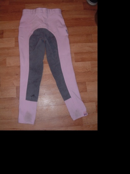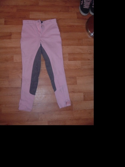 0Prodám růžové rajtky s celokoženým sedem - nošené. Délka pasu: 2x34 cm, délka od pasu k nohavici: 83 cm.