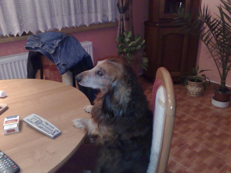 Nejdřív vyskočil na židli a pak se opřel o stůl