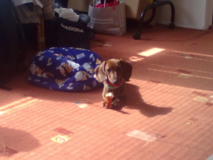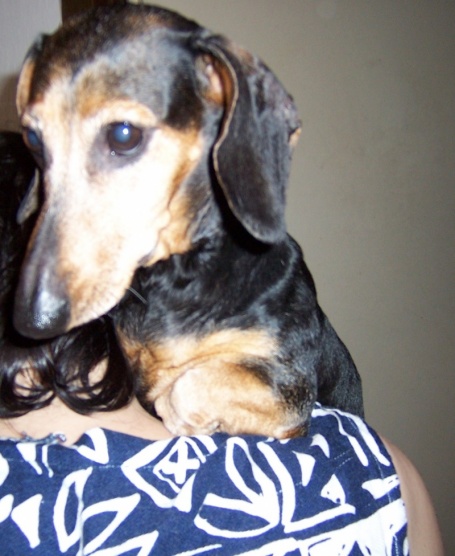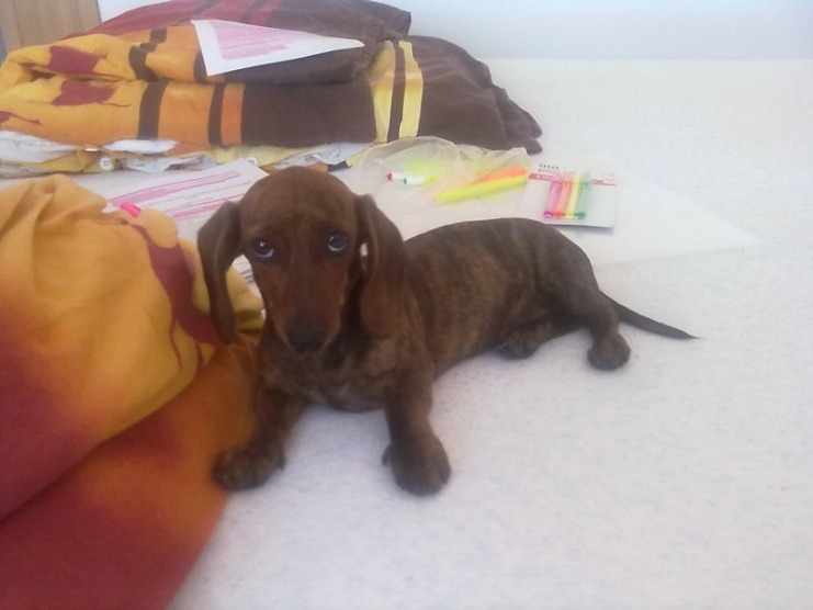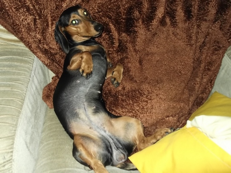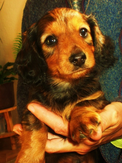 My si domů taky pořídili jednoho jezevčíka. Jmenuje se Eliška, je trpasličí, teda měla by být. Jediný problém je, že je hrozně nespolečenská, strašně se bojí jakýchkoliv cizích lidí. Je jako malé miminko, když někoho potká, hned se schová za maminkou