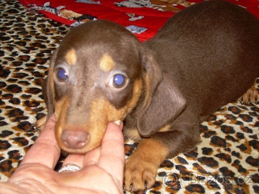 Holky prosím.. nevíte o někom kdo prodává trpasličí hladkosrsté jezevčíky v čokoládové nebo červené barvě s hnědým čumáčkem? Chtěla bych fenečku, ale inzerátů na tyhle hafíky málo
