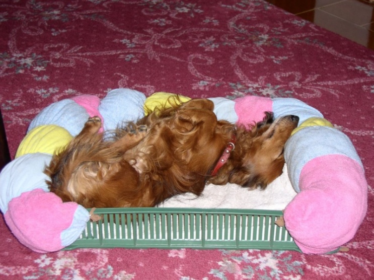 Hafánek nám bydlí ve sklepě/garáži/prádelce (v létě chládek a v zimě teplo) s přístupem na dvůr, ale když jsme doma, chce za námi, tak má povolen přístup na verandu a nebo do jídelny v bedýnce