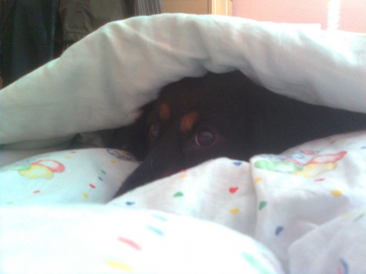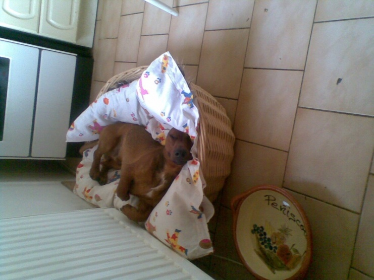 naše spí jako člověk pod peřinou na zádech, ještě si zakňučí abych ji tu peřinu nadzvedla a mohla si tam zalíst