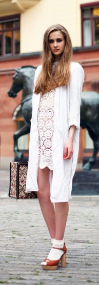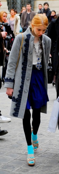 Mám taký pocit, že onedlho príde niekto z modneho priemyslu s tým, že to je najnovšia móda, dať si k sandálam nejaké ponožky. Príde mi to tak vlastne so vsetkým - vymyslí sa nejaké pravidlo, co sa ako má nosit, a návrhári dumajú, dumajú, čo tu dávno nebolo, a prídu zas s úplným opakom, a človek si na to nejak zvykne.. (kedysi som si nevedela predstavit, že by som nosila lodičky s okrúhlym "špicom", a potom, ako raz prišli, som si nejak zvykla na to). Takisto sa mi teraz ťažko predstavuje, že by som si dala bíle ponožky do balerín, ale tiež by som si zvykla (inač s týmto mám furt problém- neznášam silonkové ponožky, ale na holú nohu baleríny nemožem mať, asi by som mala začat nosiť tie ponožky