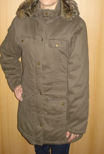 Nabízím dvakrát vzatý zimní kabát v hnědo-khaki barvě.