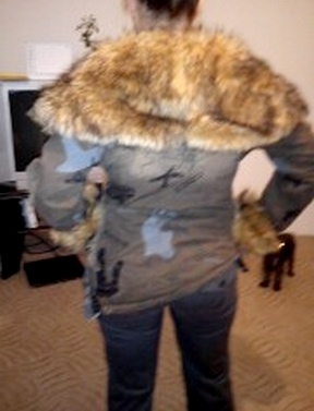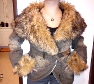 Kabát s kožíškem hnědé barvy - s velkým výstřihem