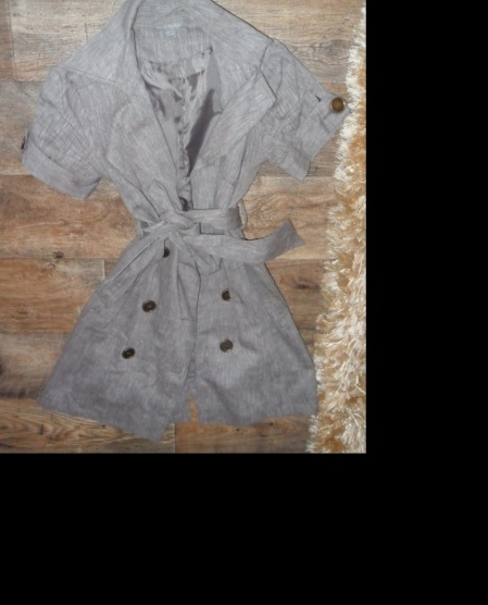 Prodám krásny kabátek s krátkym rukávem šedé farby. Velkost je S .Zapínaní má na gombíky.Kabátik má i putká přes které je veden "pásek". V zadu je decentný rázporek ..Vyzerá velice elegantne