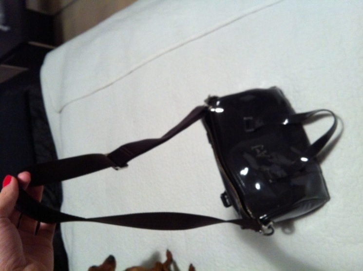 taška je lakovanbá s kovovýi aplikacemi. Lze k ní pripnout popruh a nosit jako crossbody. Taška se stále prodává jako nová kolekce v Beltisimu i Armani, PC 4190. Včetně dust bag, pište do vzkazů prosím