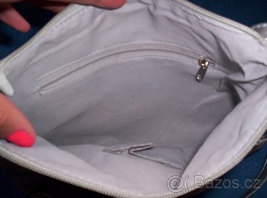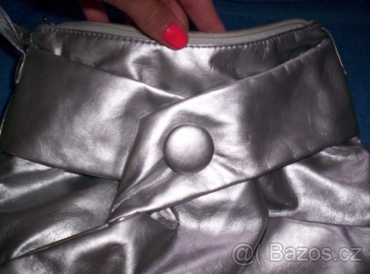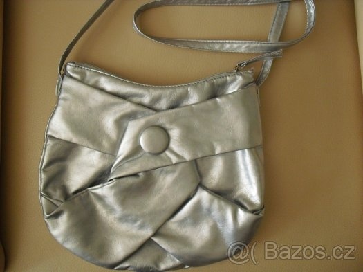 Stříbrná kabelka, nosí se přes tělo, vevnitř kapsička se zipem, úplně nová. Cena 200 Kč.
