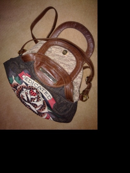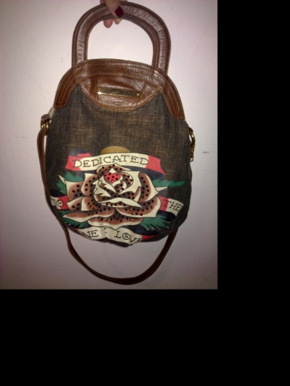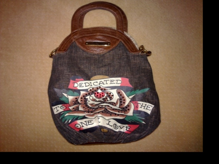 Prodávám nošenou kabelku značky Ed Hardy v hnědé barvě s kůží. Je velmi variabilní, dá se nosit jak v ruce, tak i přes rameno. Má u sebe popruh na rameno. Přední část kabelky zdobí typické logo Ed Hardy s kamínky a kovovým logem značky, zadní část je také s potiskem a značkou. Vnitřní část kabelky je velmi prostorná, je zde jedna velká kapsa na zip a další dvě menší kapsičky. Vnitřek kabelky je s logem značky. Počáteční cena byla 4.900 Kč. Kabelka byla zakoupena ve značkovém butiku Ed Hardy v Praze na Malé straně. Cena nyní: 500Kč.