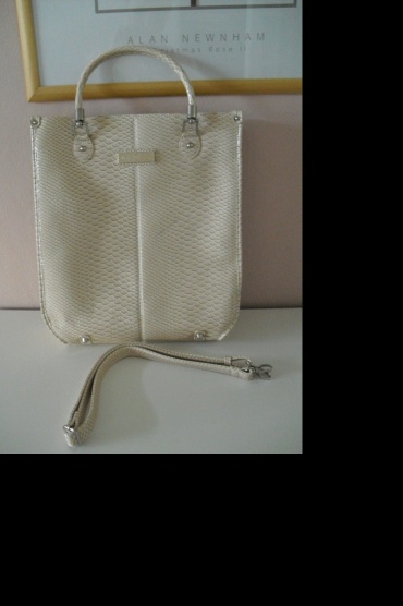 Prodám krásnou novou kabelku. Imitace krokodýlí kůže. Barva světle krémová. Prostorná(na formát A4) s mnoho kapsičkami na drobnosti. Plus přídavný popruv ve stejném materiálu( dá se nosit více způsoby) Zapínání na zip. Nápis Geoss. Cena 199kč