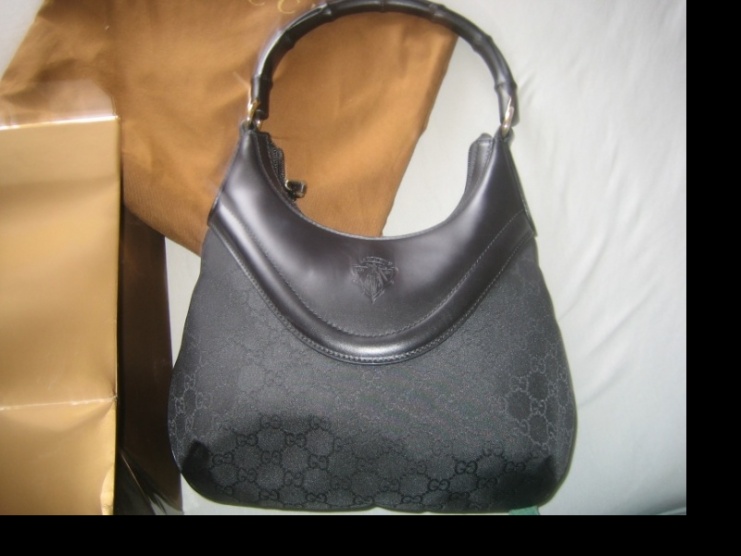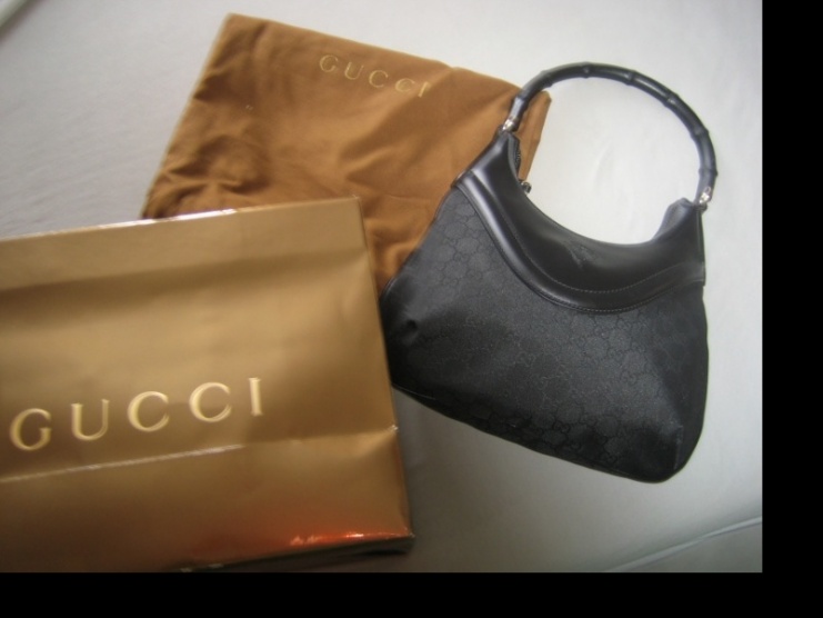 Prodám kabelku Gucci Bamboo. Jedná se o kombinaci plátna a kůže, ucho je z bambusu. Kabelka je koupená na Mimibazaru u ověřené prodejkyně. Byla použita pouze 2x. Je vhodná na den i večer, vleze se tam všechno, co potřebujete - peněženka, mobil, diář, šminky ...