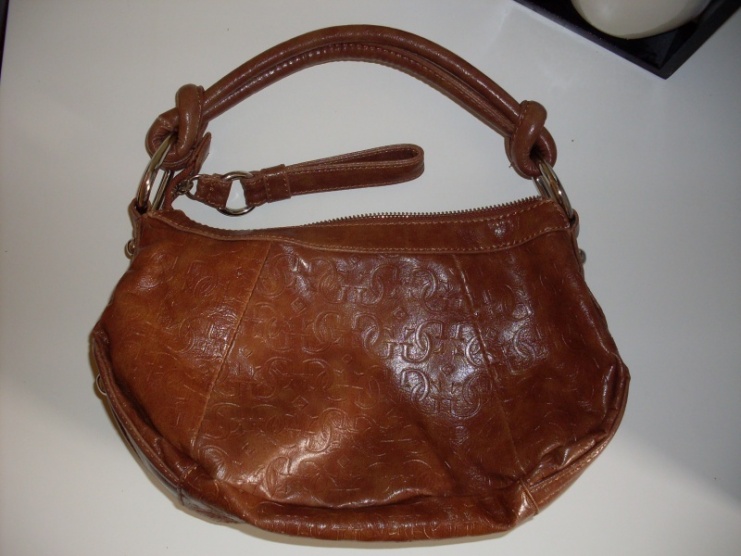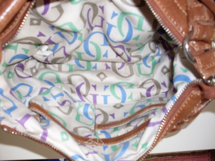 Krásná koňaková barva, monogramy G vlisované po celé kabelce.