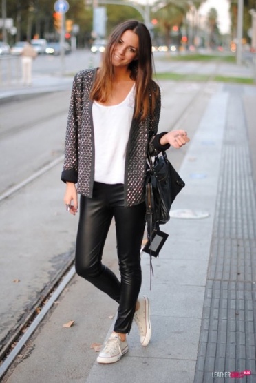 já leginy nenosím vůbec, zaprvé se mi to nelíbí - přijde mi to třeba tak pod dlouhý top, ale ne vyloženě místo kalhot k jakémukoliv triku, jedině že má slečna/dáma perfektní štíhlé a dlouhé nohy a dokonalý zadek, pak to vypadá dobře, pokud to tedy není průsvitné a není té dotyčné v předklonu vidět až do krku