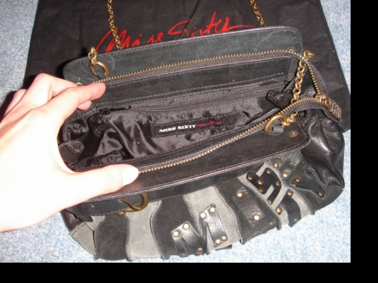 Nabízím k prodeji novou kabelku z poslední kolekce podzim/zima 2009. Je vynikající svou multifunkčností. Dá se nosit jako psaníčko, kdy se jednoduše odepne řetízkový pásek, nebo se dá nosit přes rameno. Je vyrobena ze semiše a lemována kůží a kovovými doplňky značky Miss Sixty. Kabelka byla zakoupena v lednu 2010 v obchodě Chodov přímo v autorizovaném obchodě Miss Sixty. Ke kabelce je samozřejmě dustbag, tedy speciální pytlíček s logem značky. Původní cena byla 3700Kč, cena nyní 1500Kč i s poštovným.
