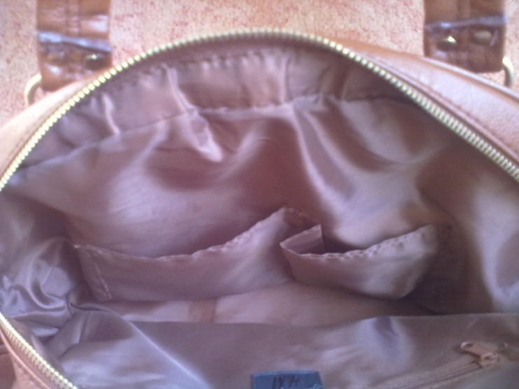 Uvnitř má na jedné straně kapsu se zipem a na druhé dvě menší kapsy. Nevím, jak dobře to půjde vidět na těch fotkách