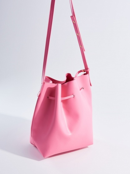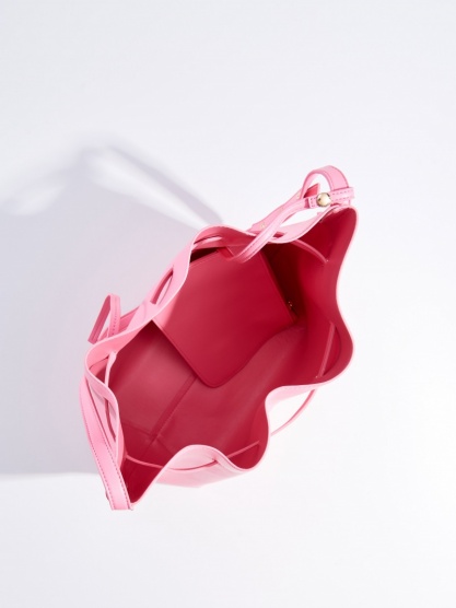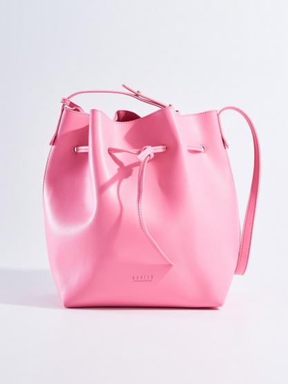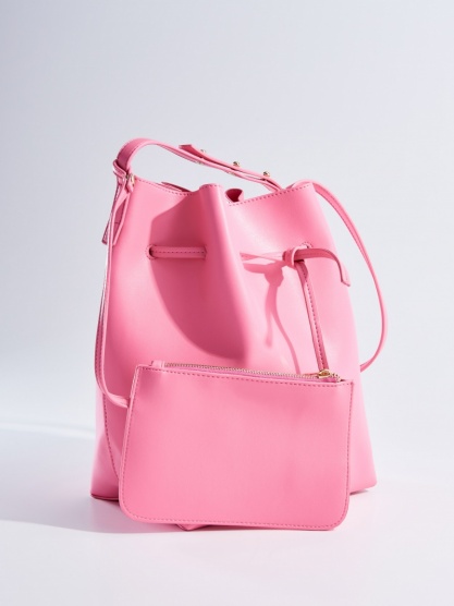 Nová růžová kabelka typu pytlík s kosmetickou taštičkou