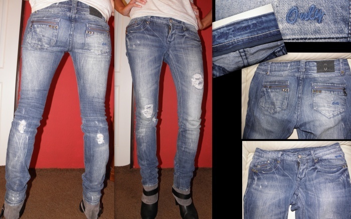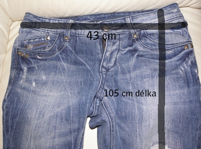 Prodám nebo vyměním džínové kalhoty značky only, jsou v předu i vzadu zdobené cvočky, zadní kapsy na zip, vpředu jedna kapsička na zip a dvě funkční, dole jsou hodně úzké ale není problém si je vzít i k širším podpatkum-viz fotka.velikost EU size 26/34 zase trošku jiné číslování takže přikládám přeměření , jsou celkem dost dlouhé.mám skřín plnou jiných džín takže tydle nenosím, měla jsem je párkrát na sobě. PC 1700,- nyní prodám za 700,-