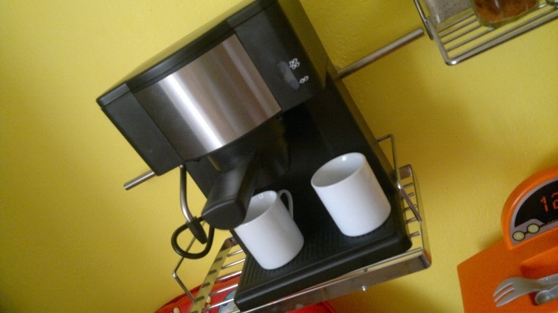 Kávovar Express s dvěma bílými hrníčky