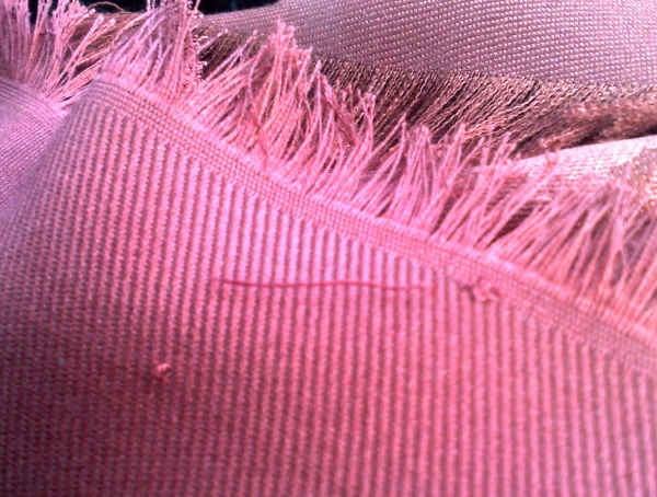 Já si myslím, že je vidět, že jsem to neudělala sama, není to zatržené, jsou tam jakoby vyjetá očka s uzlíky, jako když se vám zasekne nit, nevím, jak to líp popsat...a ta jedna nitka vychází z tkané části o 0,5cm dřív, jako kdyby nebyla dopletená...taky mě zaráží, že to takhle prodají...normálně si zboží prohlížím, ale v LV mě nenapadlo, že budou mít šátek s kazem...