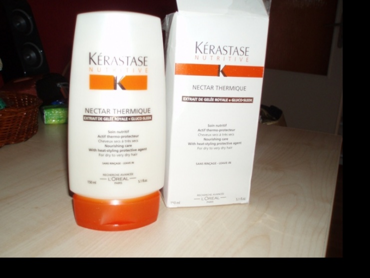 Kérastase Nectar Thermique – první termoochranná péče pro suché až velmi suché vlasy Inovační technologie – extrakt z mateří kašičky + GLUCO SLEEK (glucidový koncentrát) zajišťující přísun energie. Dodává vlasům hebkost a lesk. Ochrana před teplem. Obsahuje Xylózu – termoochtrannou aktivní složku, která pomáhá chránit vlasové vlákno před škodlivými vlivy tepla během foukání a žehlení vlasů.