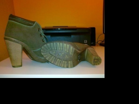 0Pěkné kotníkové botičky, délka stélky 25cm, podpatek 11cm z toho platforma 2cm.Mají perfektní vroubkovanou podrážku - nekloužou.Nové, pouze zkoušené.