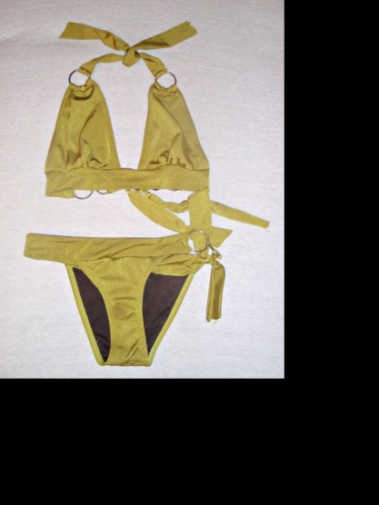 Prodávám takové zeleno žluté plavky.Součástí jsou zlaté kroužky.Velikost je S-M,jsou na zavázání..Jsou tam utržené cedulky,protože hodně odstávaly a z plavek lezly ven.Cena 150,-Kč.