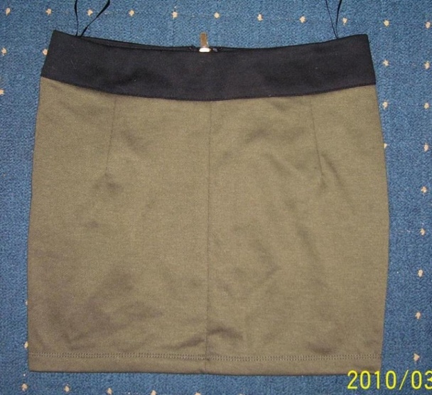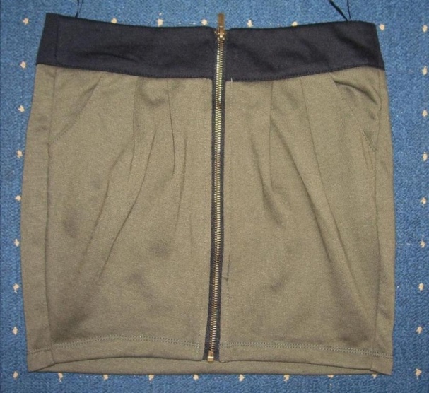 Jednou použitá sukýnka velmi pěkně sedí.Materiál polyester.Zdobená zipem ta strana lze nosit jak vzadu tak vpřeu.Míry:v pase 72 cm,délka 35 cm,poddá se.Sedí na XS možní i S.