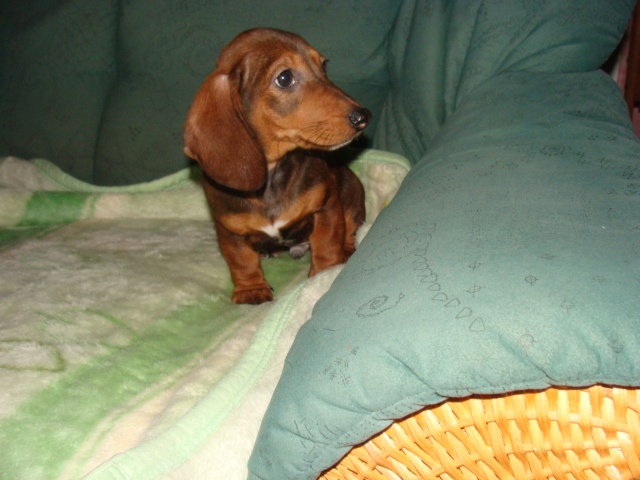 ještě Matýsek je typický jezevčík po rodičích s PP, Maybík je šmrncnutý
