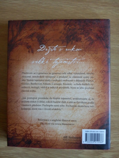 Nabízím knížku Tajemství od spisovatelky Rhondy Byrne. Kniha je nová, pouze přečtená, již ji nevyužiji. Knížka je naprosto v pořádku, nepotrhaná, nezohýbaná.