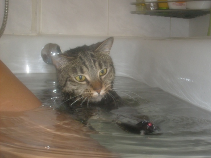pak že se kočky bojí vody. Vidím, že tam loví svou myšku =D Ta naše ji taky ráda koupe