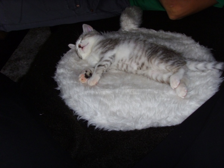 Táta jí před 2 a půl lety přinesl strašně malinkou, protože jsme měli všude myši... Jenže taky máme psa..... takže milá paní Micková byla venku pár dní a od té doby je to gaučák... Nemazlivý hajzlík, co kouše a všechno skrábe a skoro vůbec se nenechá pohladit (myslíme si, že to je kvůli tomu, že jí vzali brzo od mámy).