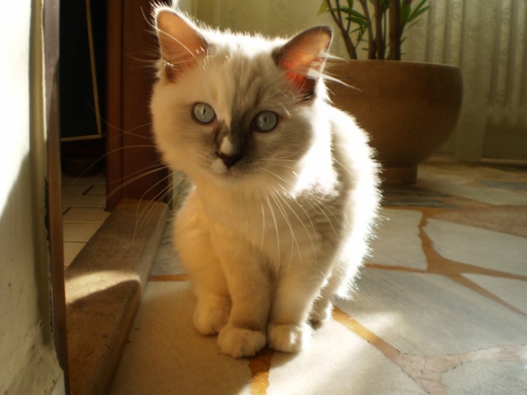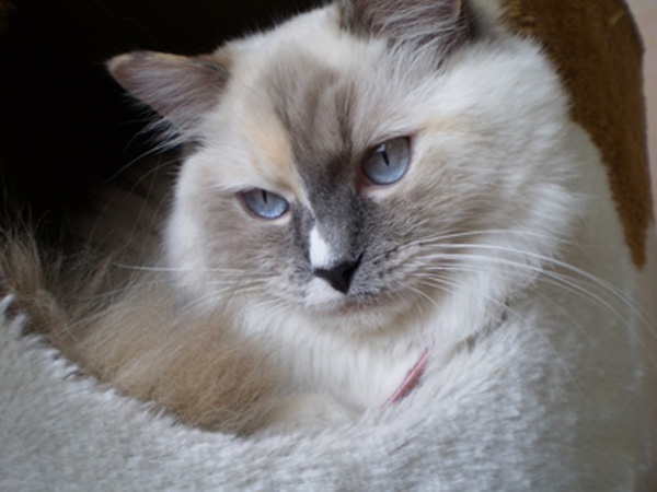 Naše princezna Bonnie, je to blue cream mitted Ragdoll, v červenci bude mít rok. Už teď váží k 5 Kg!!