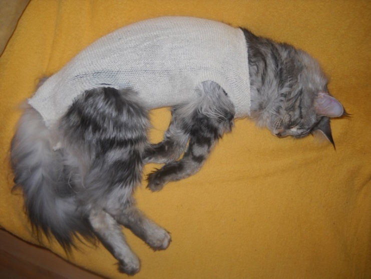 Já bych jí ten pruban dala, naše pitomka si ránu po kastraci tím hrubým jazykem tak rozlízala, že jí to začalo mokvat a rána se hojila asi tři měsíce. Bylo to fakt hnusný. Takhle naše příšera vypadala