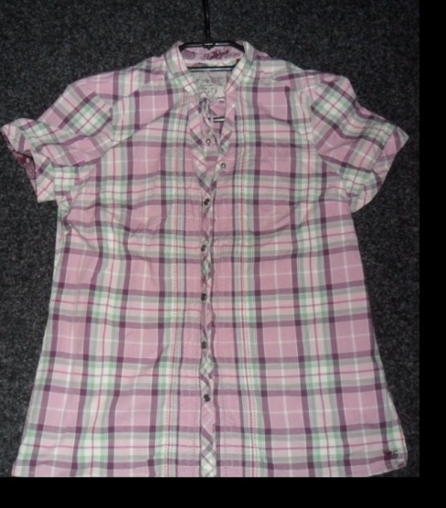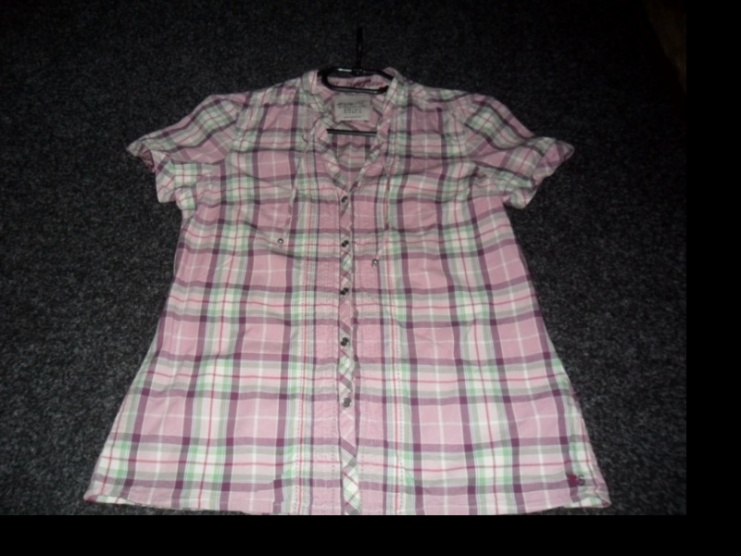 Predám krásnu kockovanú košelu s krátkym rukávom značky Esprit.Košielka ma pri golieri šnúrky ktoré sa daju zaviazat.Farba košele je väčšinou ružová a sú tam odtiene zelenej a fialovej.Je minimálne nosená žiadne viditelné vady.Moja cene je 350kč včetne pošty