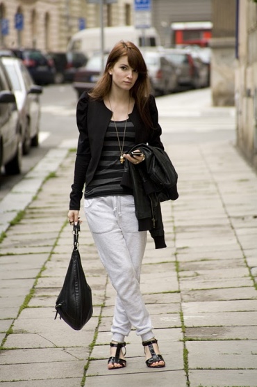 Mně když někdo řekne že má na sobě tepláky a podpatky, tak si představim starou tlustou cikánku z maloměsta jak v tom běhá po náměstí a myslí si jak neni stylová