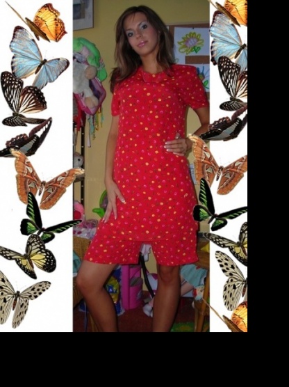 Značkový komplet tvořený ze tří dílů:kraťasy a dvě dlouhá trika/šaty