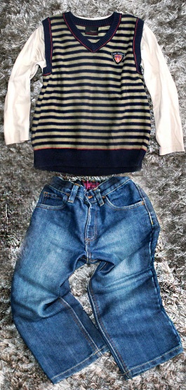 triko i vesta zvlášť - riflíky George syn měl pouze na focení oboje bez vady