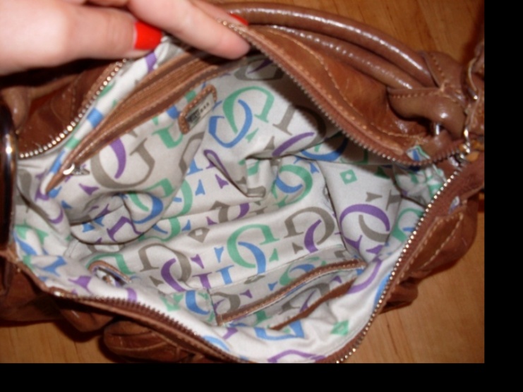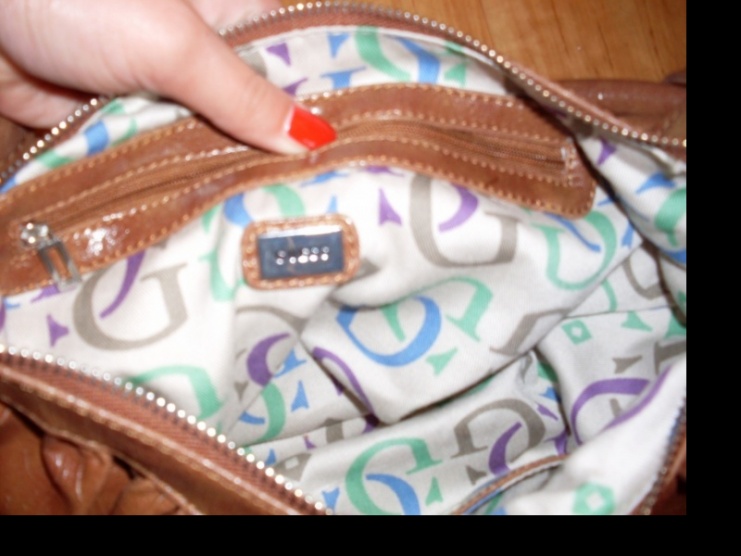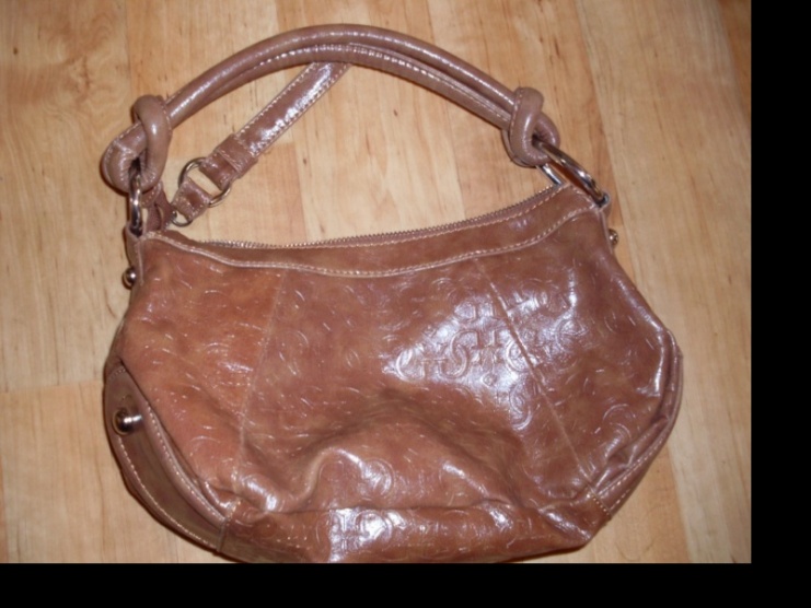 Prodám málo nošenou kabelku Guess, v koňakové barvě. Po celé kabelce jsou vytlačeny inicály G. Na přední straně tři spojená géčka.