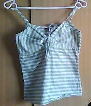 tílko - bílozelené pruhované, zajímavý dekolt, vel. S