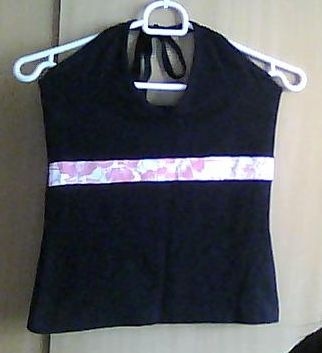 tílko - černé s růžovým pruhem, za krk, vel. S - M, pružné