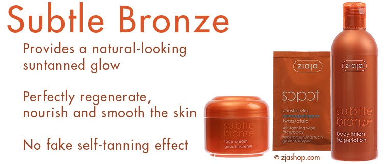 už jste někdo vyzkoušel řadu Subtle Bronze od kosmetiky Ziaja.. ? Pravděpodobně to bude asi spíš novinka, mají to být nějaké šetrné rozsvětlující tělové balzámy, mají napravovat barvu pleti, lehce opalovat atd.. trošku to bude asi takové, jako samoopalovací krémy nebo něco na ten způsob.. Docela mě to láká, ale nikde jsem nenašla žádné české recenze, tak nevím, jestli do toho mám jít či né.