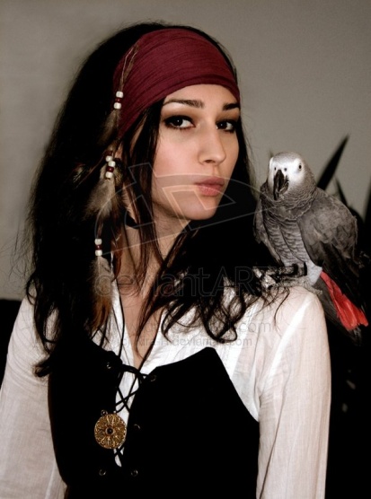 Tak na hlavu šátek uvázaný na "piráta", do jednoho ucha náušnici(kruh), pak můžeš přidat pásku přes oko, nějakou bílou košili, kalhoty, vysoký kozačky a šavli(tu bych vyrobila z nějaké tvrdé lepenky, a ještě pokud máš nějakýho plyšovýho papouška, tak bych si ho přišila na rameno té košile, je to sice nepraktický ale podle mě super